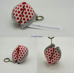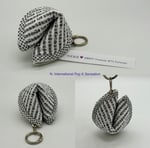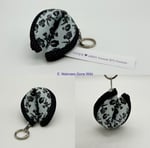 The pouch features a binding around the edge, and a white nylon zipper with a keyring on to hang it with. I have used a foam interfacing to so that the fortune cookie maintains its structure as it hangs on your bag.